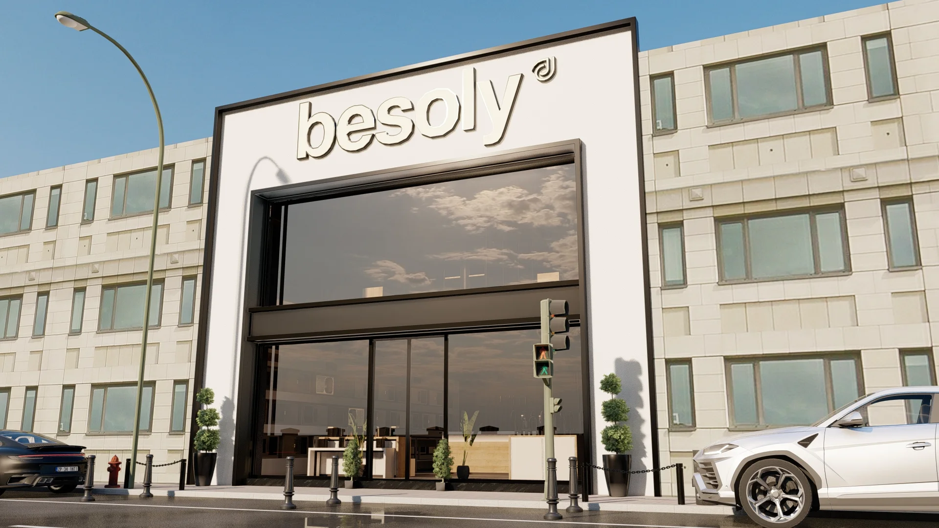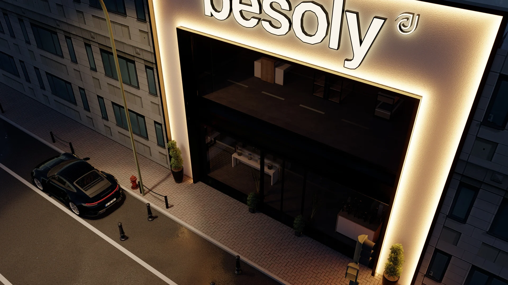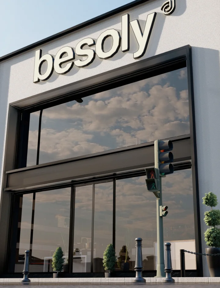 Projede gerçekçi 3D modelleme teknikleri kullanılarak Besoly mağazası dış mekan tasarımı müşteriye sunulur. Bu sayede, müşteriye projenin tamamlanmış halini daha gerçekçi bir şekilde göstererek, memnuniyet düzeyini artırırız.