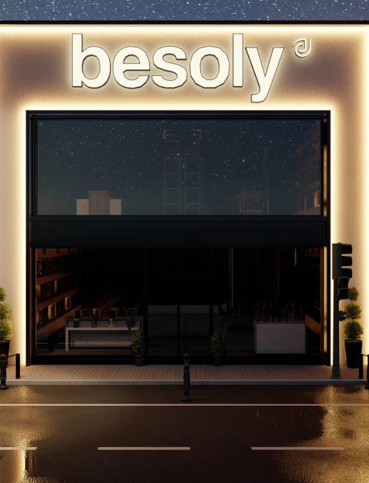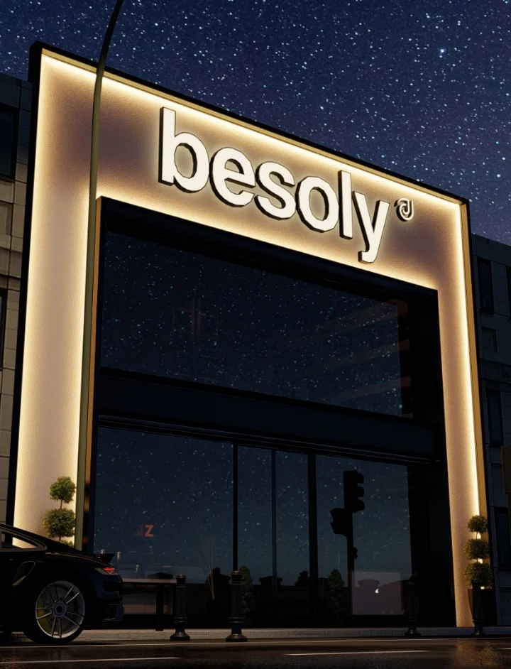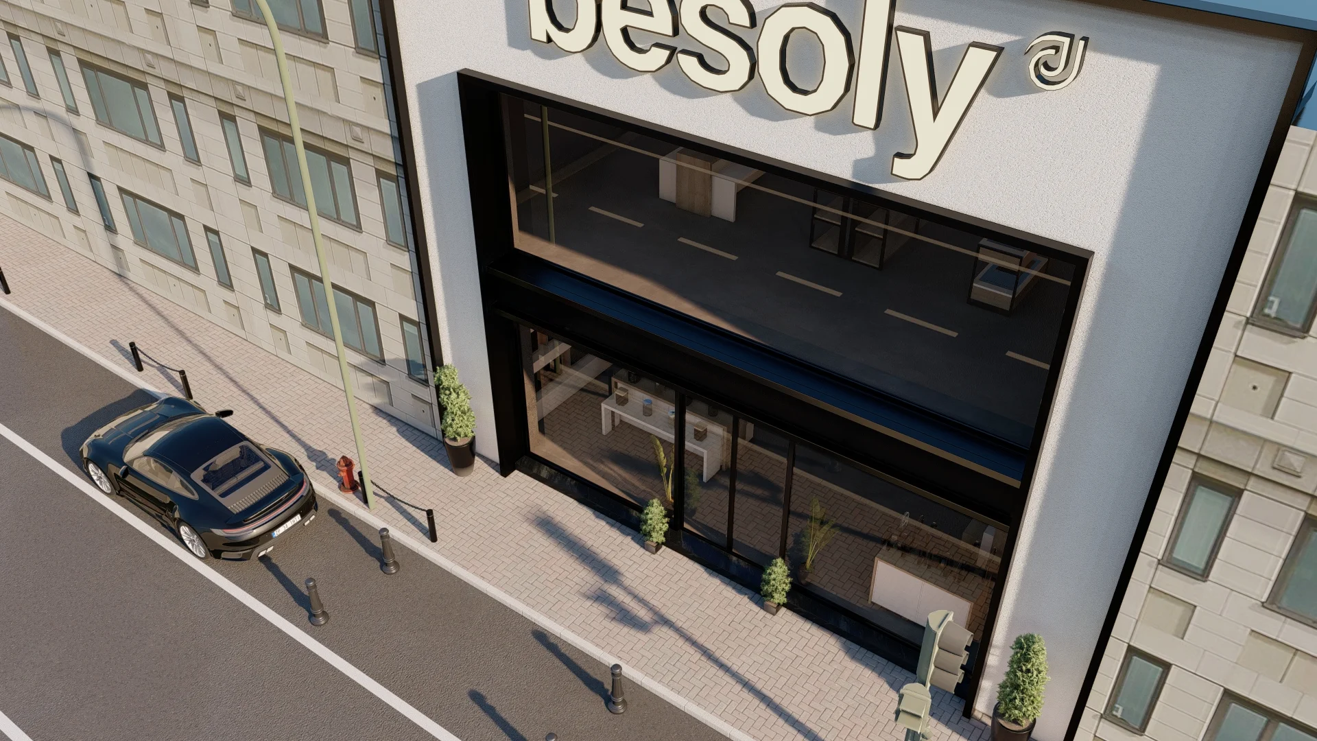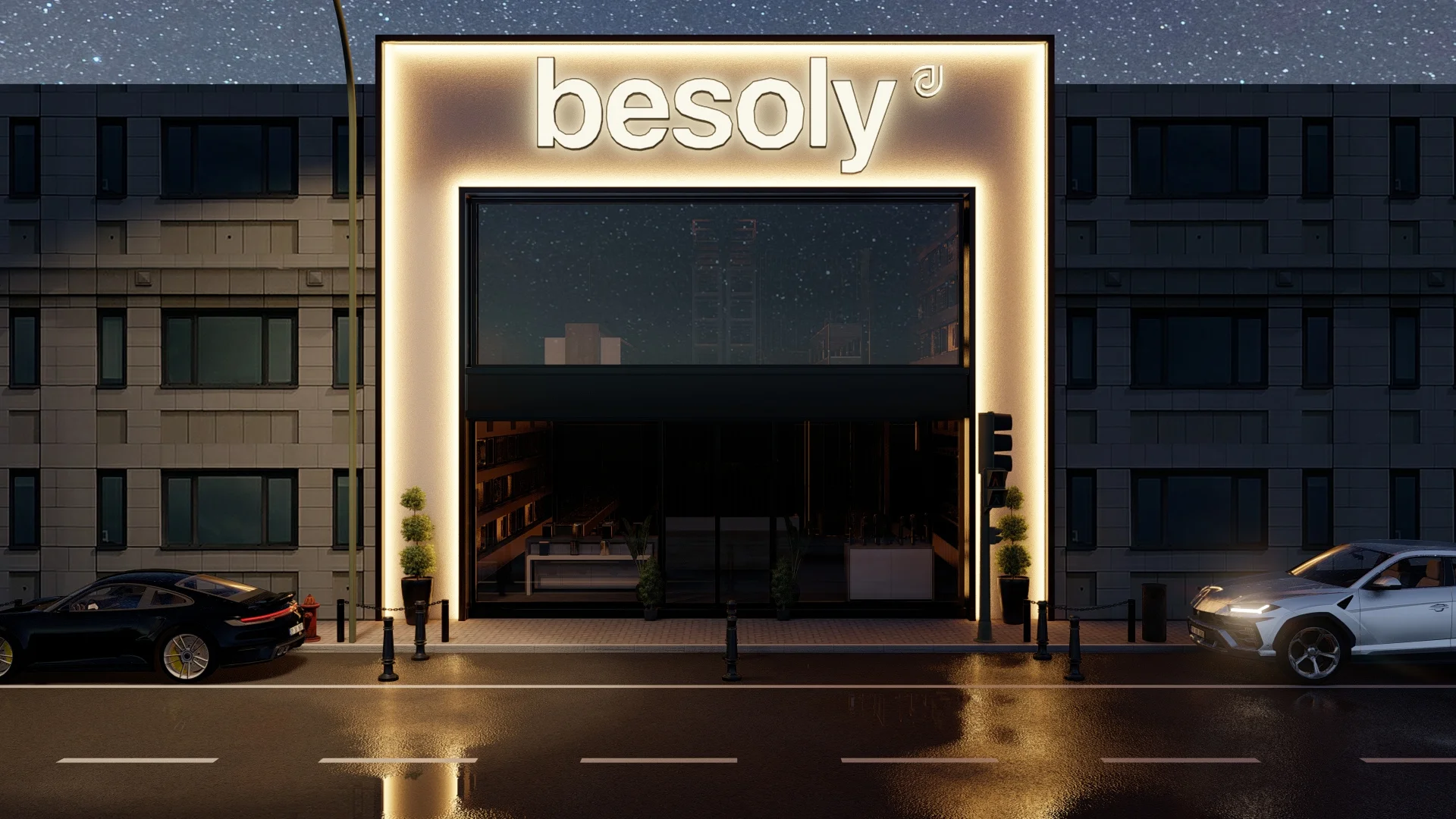 Projede gerçekçi 3D modelleme teknikleri kullanılarak Besoly mağazası dış mekan tasarımı müşteriye sunulur. Bu sayede, müşteriye projenin tamamlanmış halini daha gerçekçi bir şekilde göstererek, memnuniyet düzeyini artırırız.